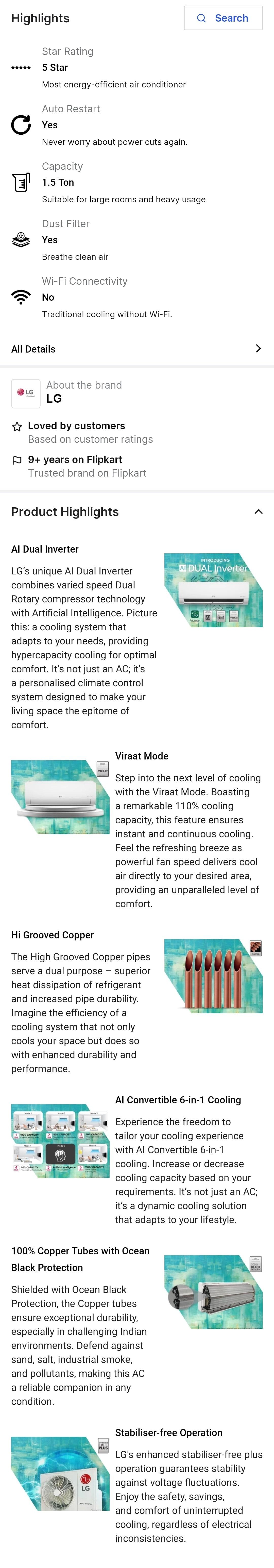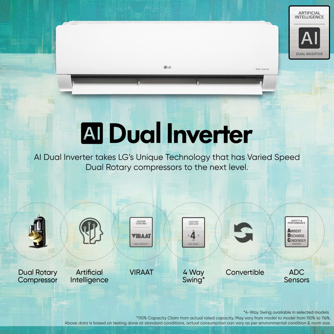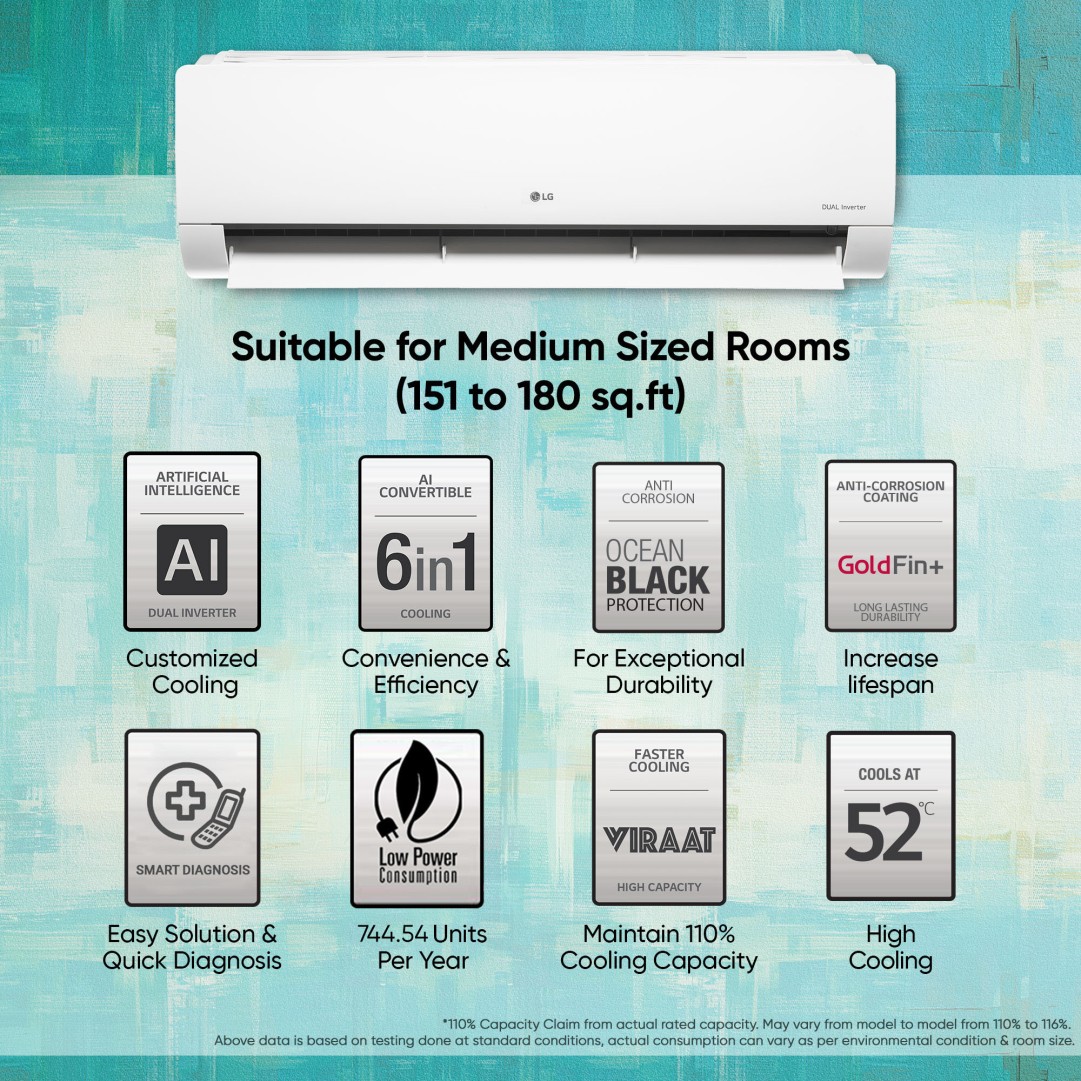 LG AI Convertible 6-in-1 Cooling 2024 Model 1.5 Ton 5 Star Split Dual Inverter 4 Way Swing, HD Filter with Anti-Virus Protection, VIRAAT Mode & ADC Sensor AC - White (TS-Q19YNZE1, Copper Condenser)